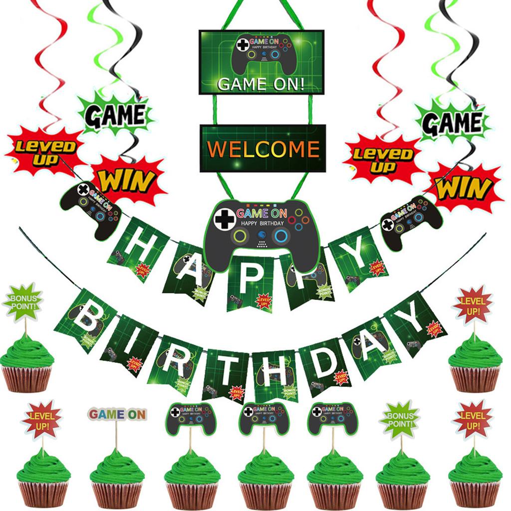 Game Theme Party Decoration Birthday Flag Gate Joint Cake Plug Set Gameone Banner Customization Creative