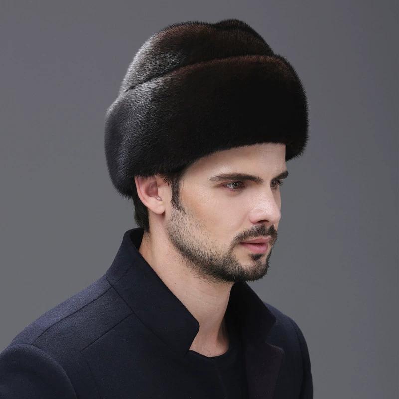 Mink Hat Men's Winter Middle-aged and Elderly Whole Mink Hair Old Man Hat Winter Outdoor Warm Real Fur Cotton Hat