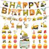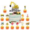 Children'S Birthday Party Decoration Excavator Pulling Flag Vortex Construction Truck Forklift Cake Sticker