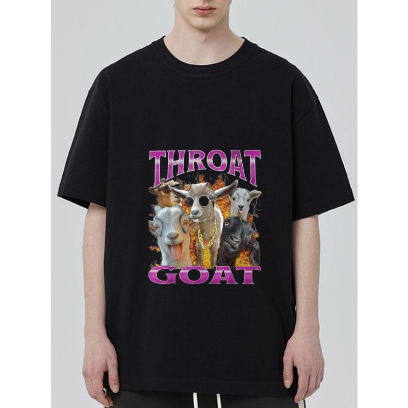 Black T Shirt with Throat Goat Graphic Print and Goats Pattern for Casual Wear