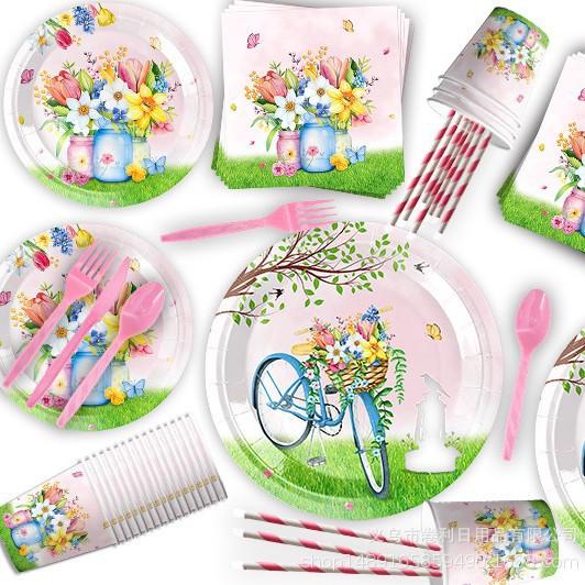 Spring Flowers Flower Theme Party Supplies Tableware Paper Plates Paper Cups Tissue Tablecloths Party Decorations