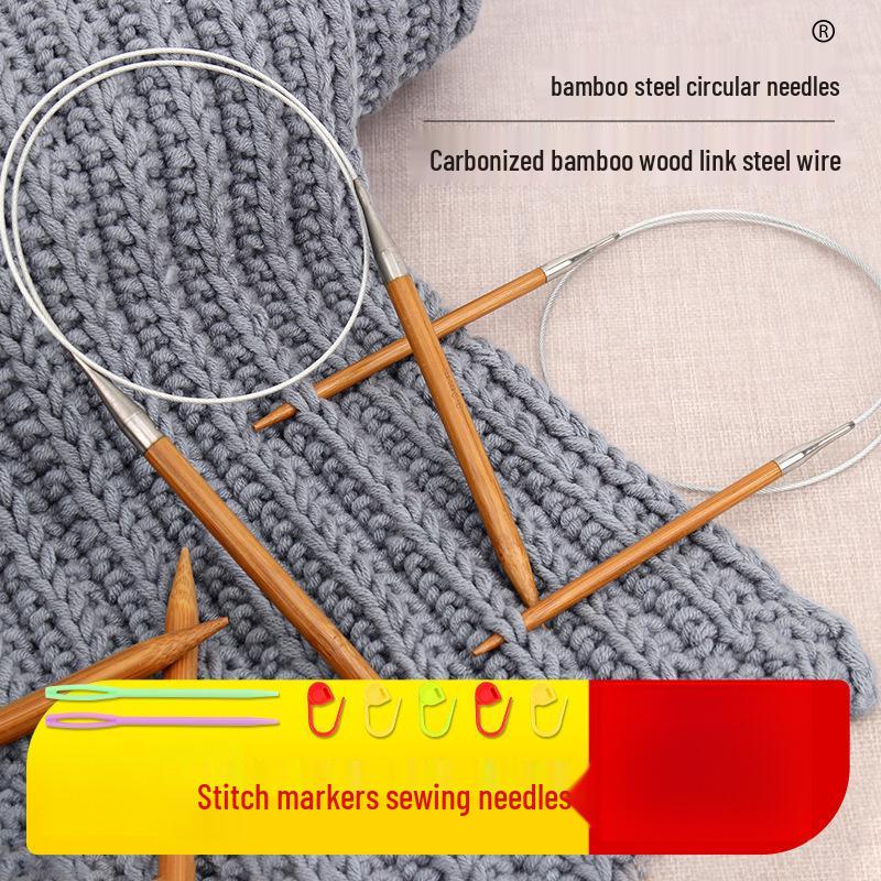 Bamboo-Steel Circular Knitting Needles, Full Set for Hand Knitting Blankets.