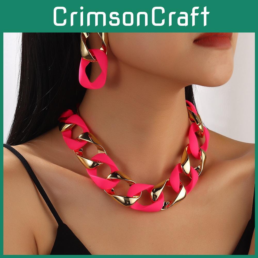 This stylish jewelry set features a vibrant fluorescent design with a twisted, pattern, including a necklace and earrings made of durable plastic and resin. The necklace measures approximately 20 inches with a standard chain, and the alloy pendants showcase floral and geometric motifs. Perfect for adding a pop of color to casual or fashion-forward outfits during fall 2024. Easy to maintain, simply wipe with a damp cloth to keep the bright colors and polished finish.