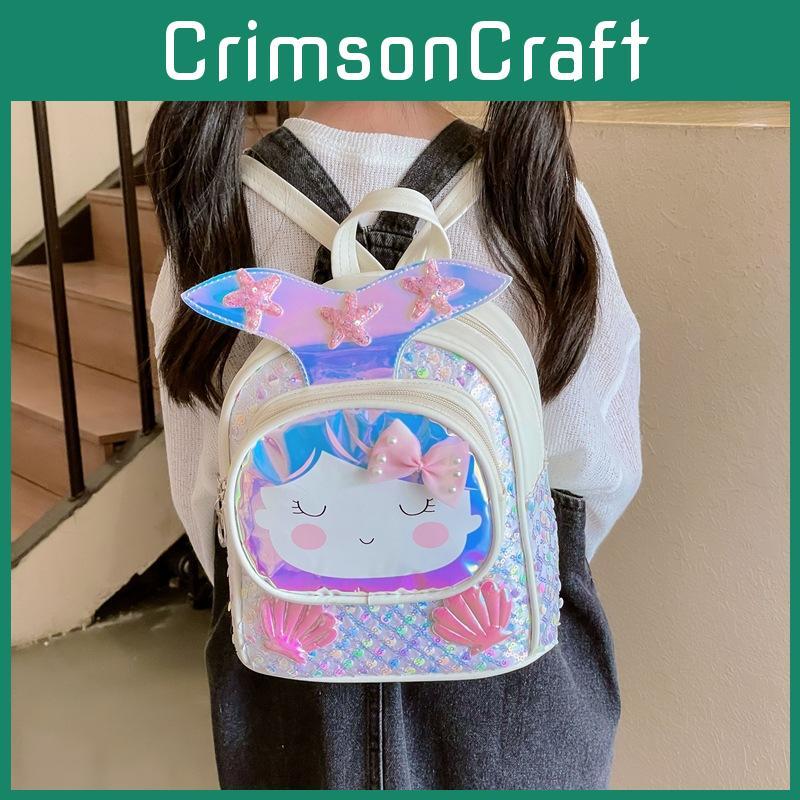 Backpack Children Girls With Shiny Shell Mermaid Tail For Use Kindergarten