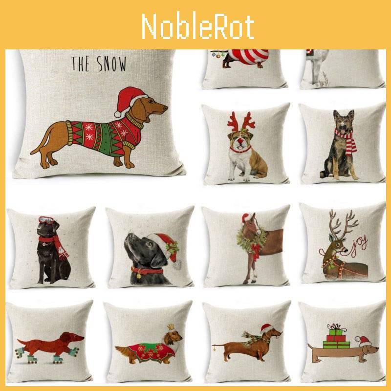 Dachshund Printed 18 Christmas Linen Cushion Cover Sofa Car Decor Pillowcase