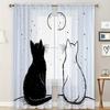 2 Pieces Hd Digital Black And White Kitten Printed Window Screen Home Decor Style Decoration Living Room Window Curtain
