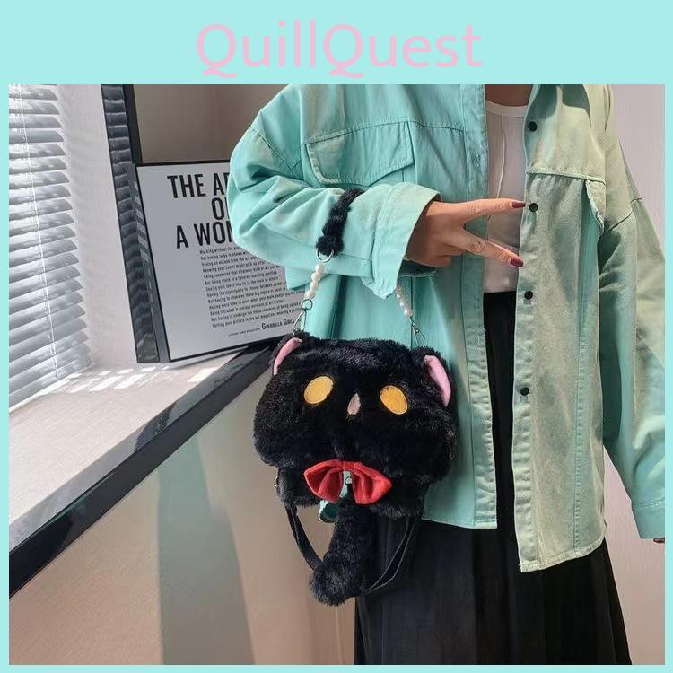 Made from high-quality PP cotton fill, this bag is soft to the touch while maintaining its shape, making it an eye-catching piece thats as comfortable to carry as it is cute.Measuring 24 cm in width, 16 cm in height, and 4 cm in thickness, the Cozy Cat Plush Shoulder Bag is the ideal size for your daily essentials.