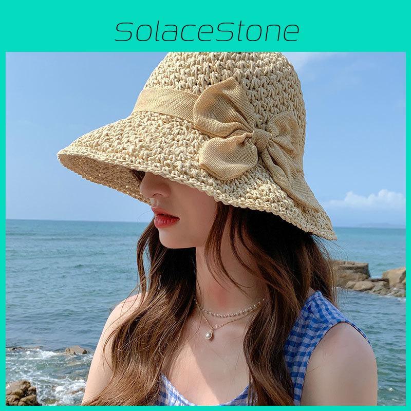Womens Straw Versatile Hat Wide Brim For Sun Protection With Elegant Knot Bow