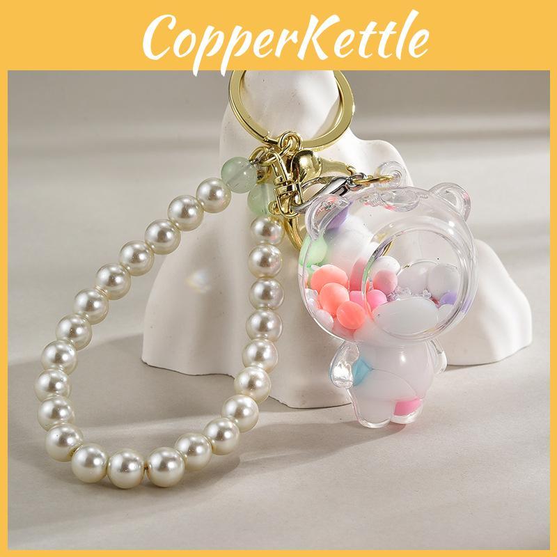 Bead Crystal Color Bear Keychain Bag Pendant Accessory Gift With Chain Pearl