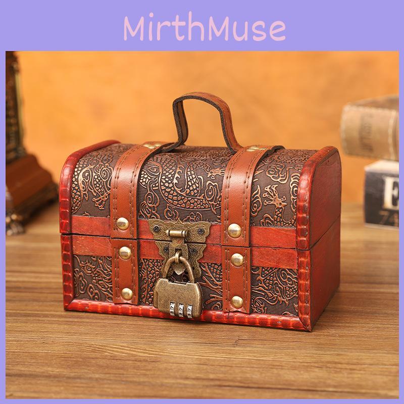 Retro Pattern Dragon Wooden Storage Box With Metal Lock For Desktop Storage
