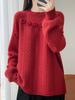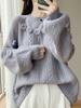 Handmade Crochet 100% Pure Wool Sweater Women's Round Neck Ragged Shoulder Lantern Sleeve Pullover Loose Versatile Twisted Flower Knitted Sweater
