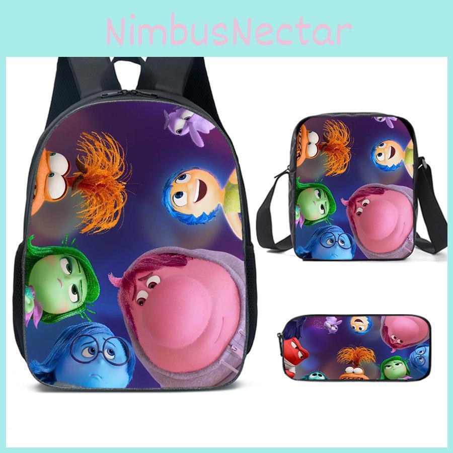 This set includes a 17-inch school backpack, a crossbody bag, and a pencil case, all featuring colorful "Inside Out" cartoon patterns. Made of durable Oxford cloth with polyester lining, the lightweight design offers breathable comfort and ample storage. Ideal for school use, it supports daily organization. Wipe clean with a damp cloth for maintenance.