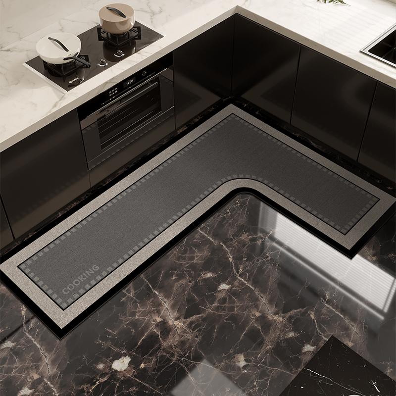 Pvc Kitchen Floor Mat Waterproof Non-Slip Vinyl Carpet L-Shaped Cat Pattern Plants Flowers Mats Home Decoration Rug Alfombra