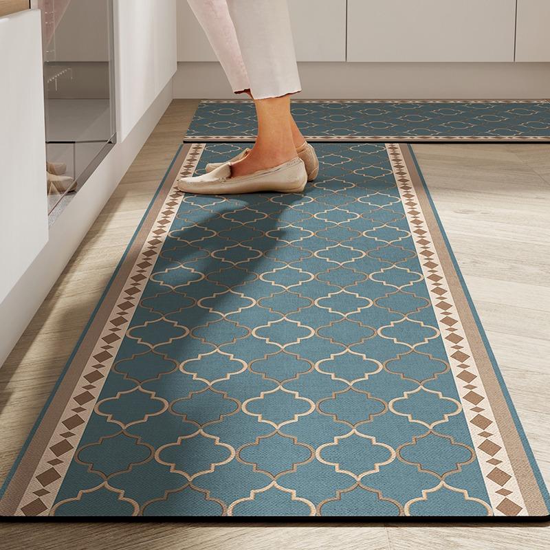 Kitchen Floor Mat Anti-Slip Oil-Proof Erasable Carpet Leather Pvc Waterproof Rug Beige Pattern Texture Home Decor Mats
