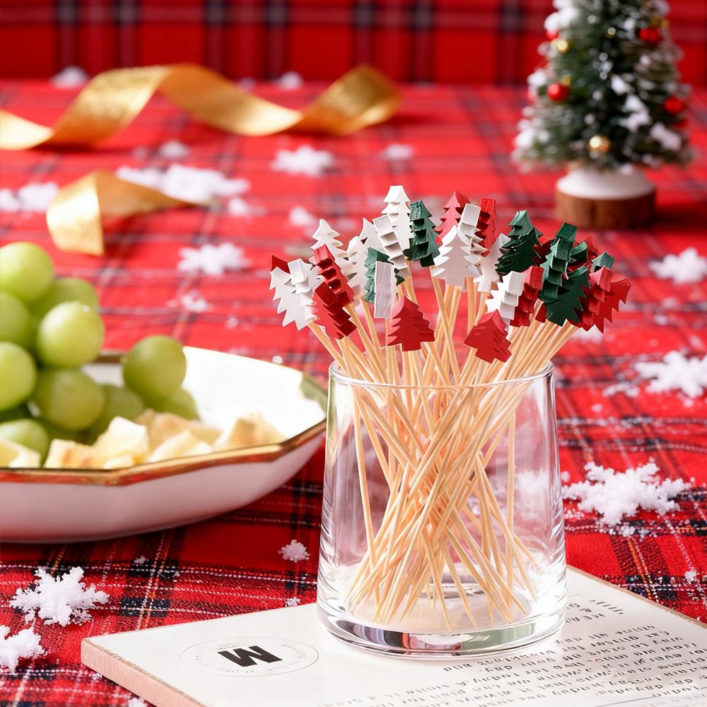 Affordable Disposable Bamboo Toothpicks 50/100PCS Christmas Fruit Picks Oral Care Interdental Cleaning Supplies