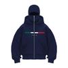 This is a hooded jacket. It features a double hood with a zipper for easy on and off. While the overall style is minimalist, unique details, such as the graphic pattern on the back, add a touch of style and personality. This hooded jacket is both practical and trendy, perfect for a variety of occasions, adding a casual yet cool vibe to any outfit.