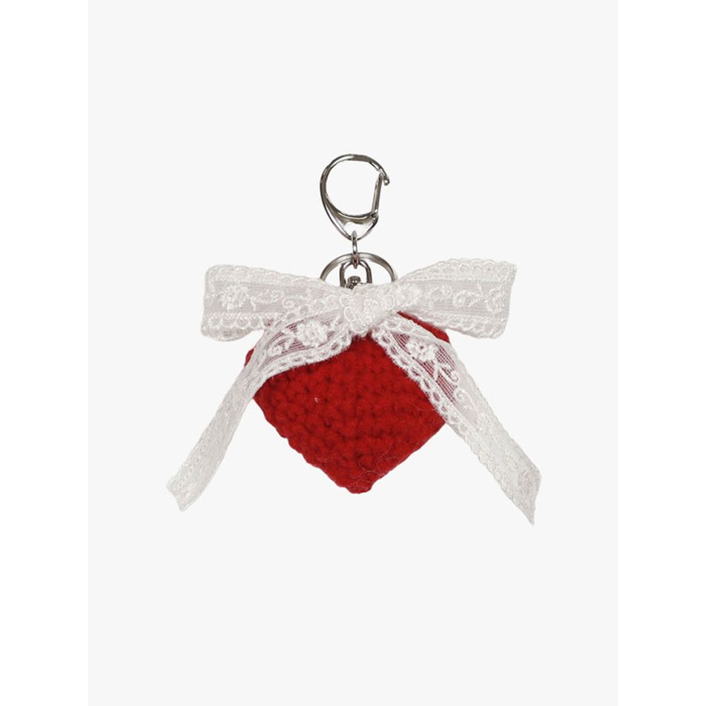PinK PinEAPPLE CROCHET HEART RIBBON keyring_RED