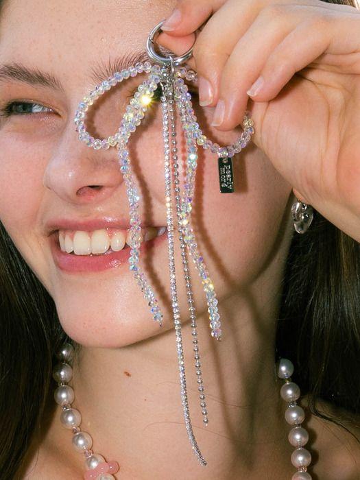 Pearlymore White Crystal Ribbon Keychain_PM24A003HS