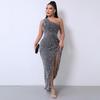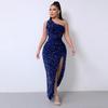2023 Independent Fashion Velvet One-Shoulder Sequin Slit Evening Gown