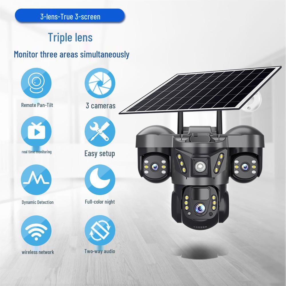 Wireless 360° Solar-Powered PTZ Camera with Triple-Lens and WiFi/4G Connectivity