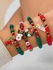 Christmas Color Block Letter Polymer Clay Beaded Bracelet Set with Snowman Design