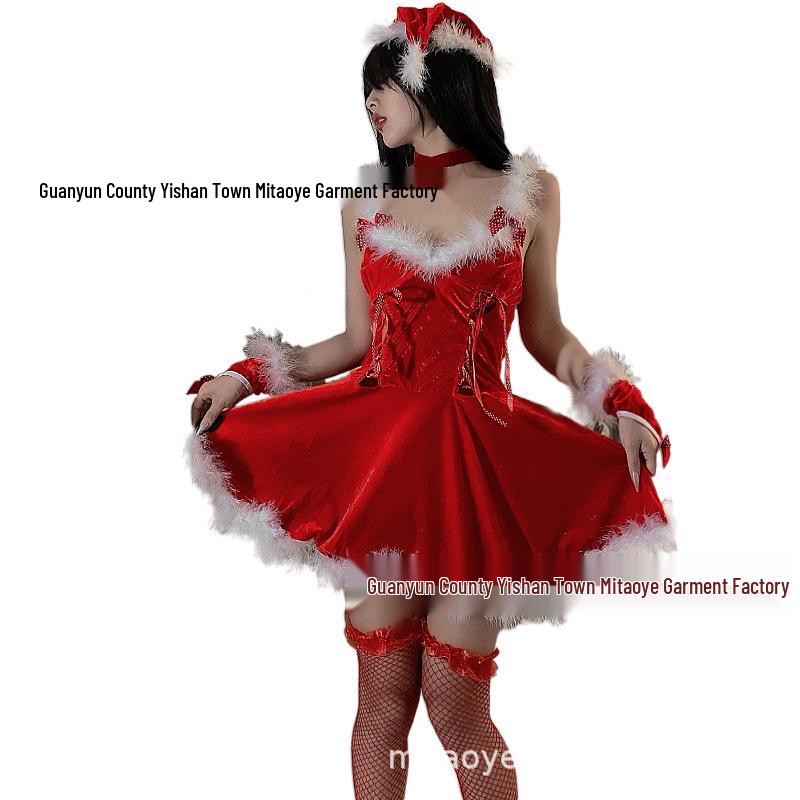 2023 Holiday Backless Plush Spaghetti Strap Dress - Sexy Christmas & New Year Outfit