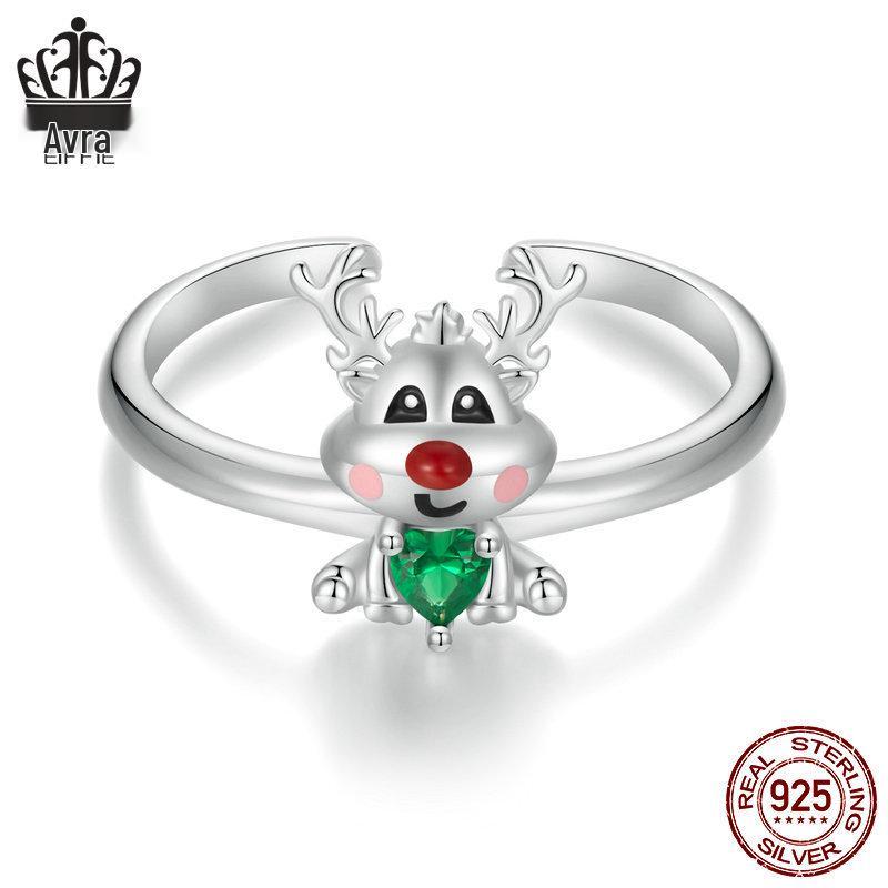 Everlove Reindeer Moose S925 Sterling Silver Rhodium-Plated Open Ring for Women