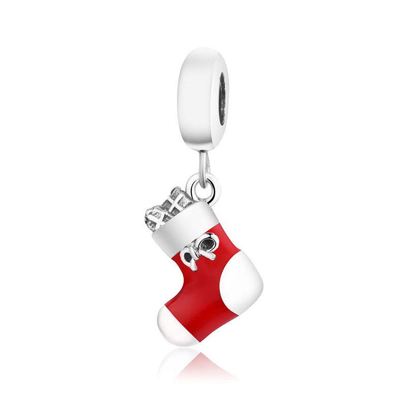 925 Sterling Silver Red Enamel Christmas Stocking Charm - Festive DIY Bracelet Gift for Friends & Family