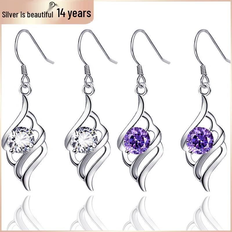 S925 Sterling Silver Angel Feather Stud Earrings - Korean Style Simple Wings, Versatile Jewelry for Christmas