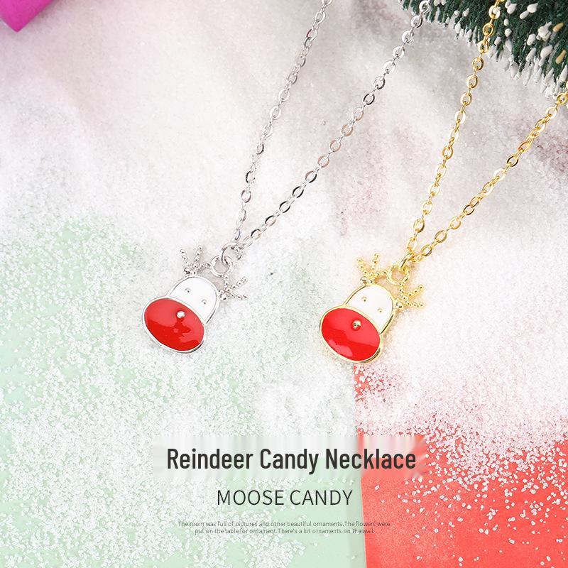 2020 S925 Sterling Silver Reindeer Pendant Necklace for Women - Creative Drip Oil Design, Christmas Fashion Clavicle Chain Hot Style
