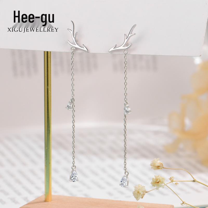 Higu S925 Silver Reindeer Antler Tassel Earrings: Christmas Dangle Studs for Women, Mori Style