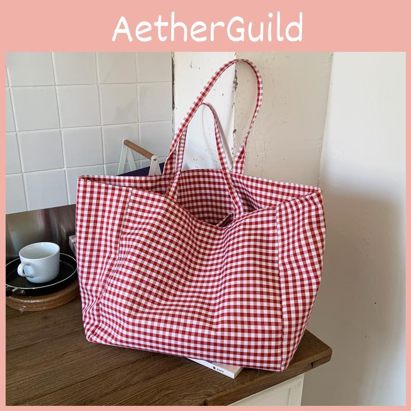 Pattern Simple Checkered Large Capacity Women Casual Canvas Tote Bag For Daily