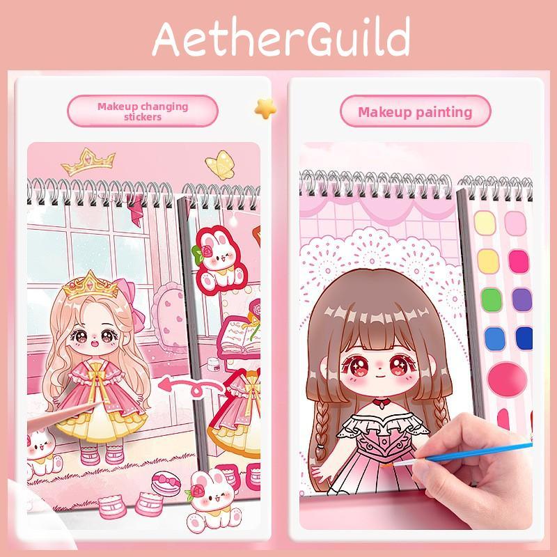 This princess dress-up sticker book features creative, vintage-style scene designs that inspire imaginative play. Made of sturdy coated paper, with vibrant, weather-resistant stickers. Ideal for children engaging in DIY costume-matching activities at home or during travel. Wipe clean with a damp cloth to maintain quality.