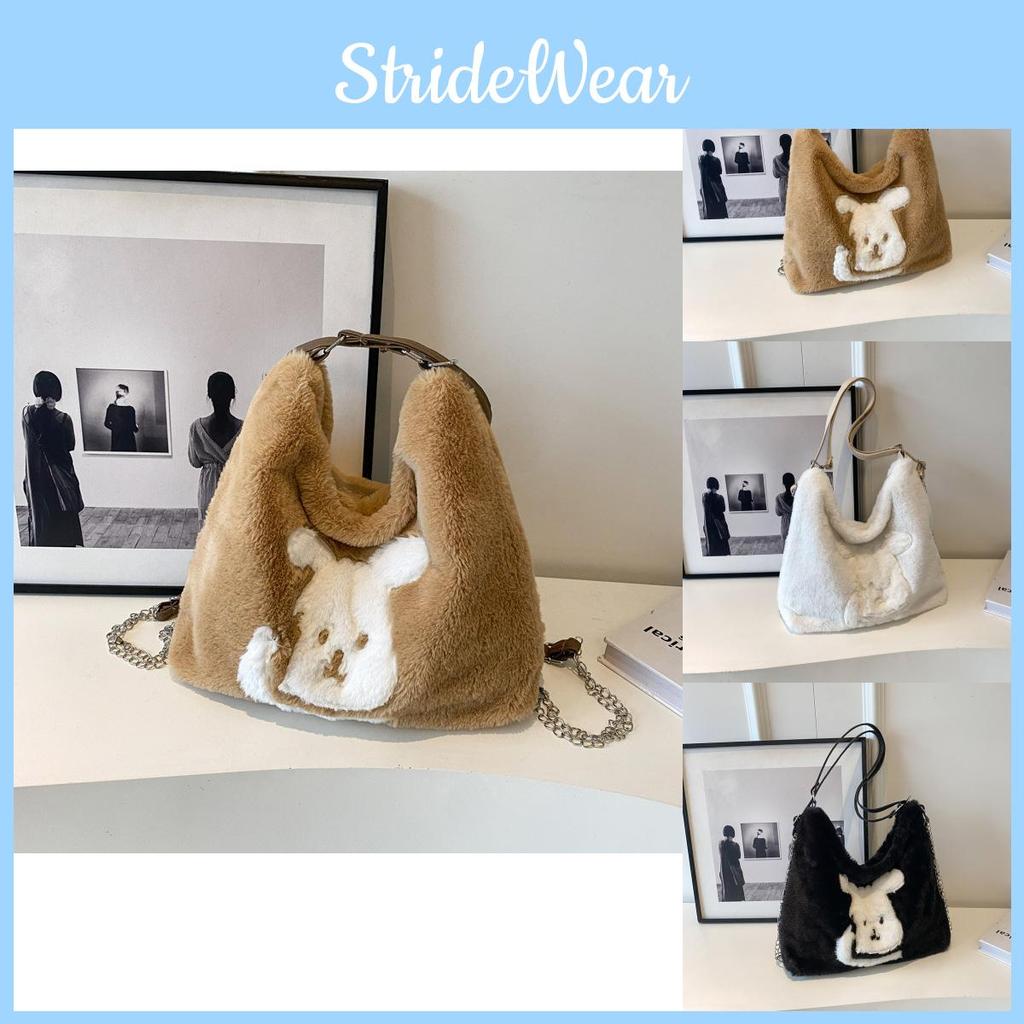 Cute Tote Plush Bag For Women Trendy Large Capacity Bag With Cartoon Patterns Ideal For Daily Use Available In Black Cream Khaki