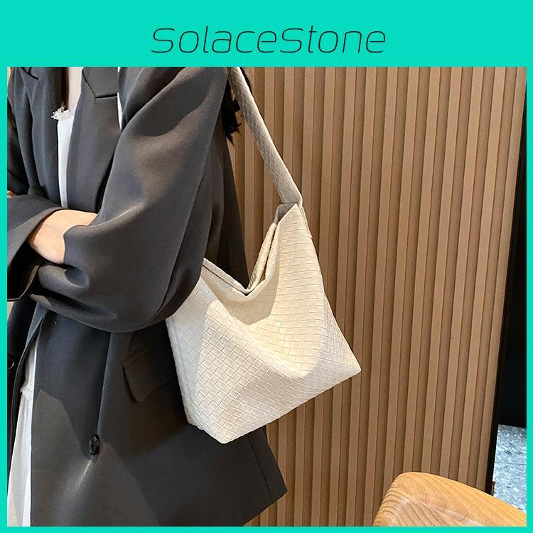 Solid Simple Color Woven Texture Women Large Capacity Tote Bag Daily For