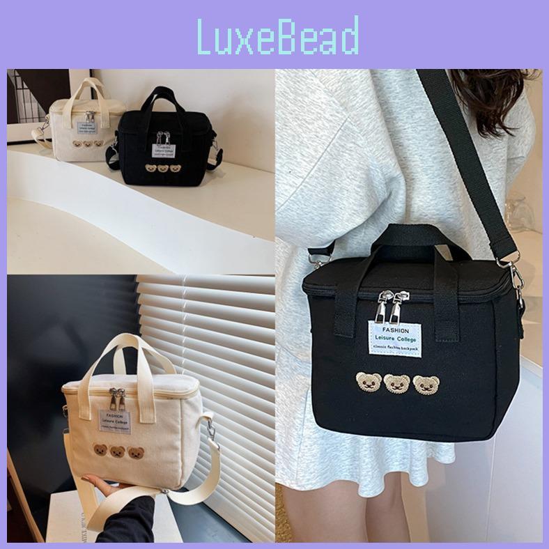 Teddy Bear Embroidered Double Zipper Messenger Bag Simple Square Bags Shoulder