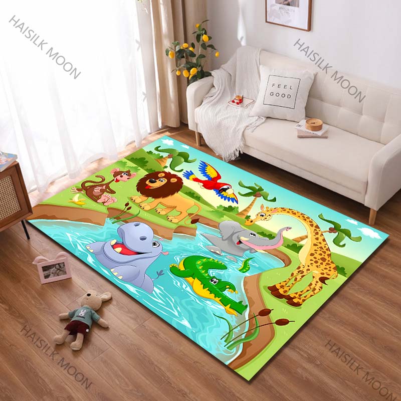 1PC Cartoon Zoo Printing Carpet Rug for Living Room Bedroom Sofa Doormat Decor Kids Play Home Area Rug Non-slip Floor Mat Gift