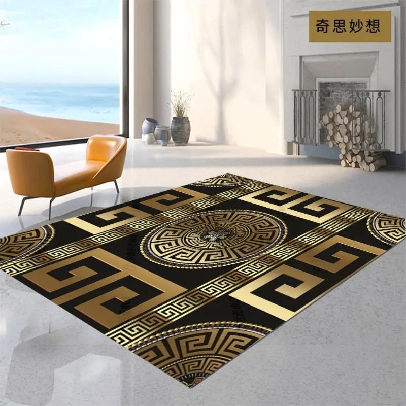 Light Luxury Black Golden Large Area Carpet Greece Geometric Printed Rectangle Waterproof Room Bedroom Kitchen Home Decoration