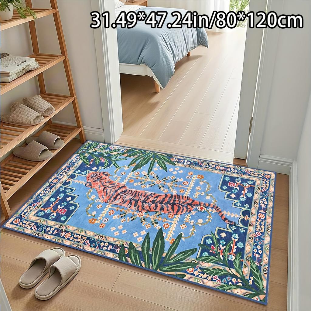 Crystal Velvet Non Slip Point Plast Soles Blue Hidden Tiger Pattern Carpet Sofa Pad Door Mat Bedroom Rug Home Decor