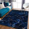Luxurious Velvet Nordic Marble Area Mat Deep Blue Golden Veining Non Slip Backing Machine Washable Living Room Bedroom Office