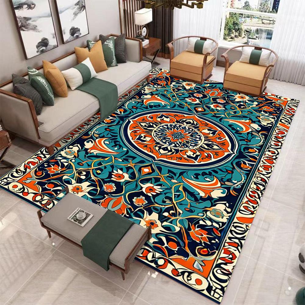Symmetrical Flower Pattern Carpet Fashionable Living Room Decoration Large Area Floor Mat Corridor Balcony Anti Slip Door Mat