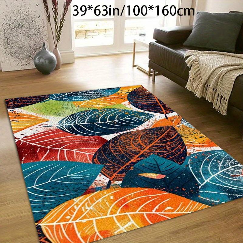 Colorful Crystal Velvet Leaf Patterned Area Rug for Living Room And Bedroom Home Office, Entryway, And Indoor Decor