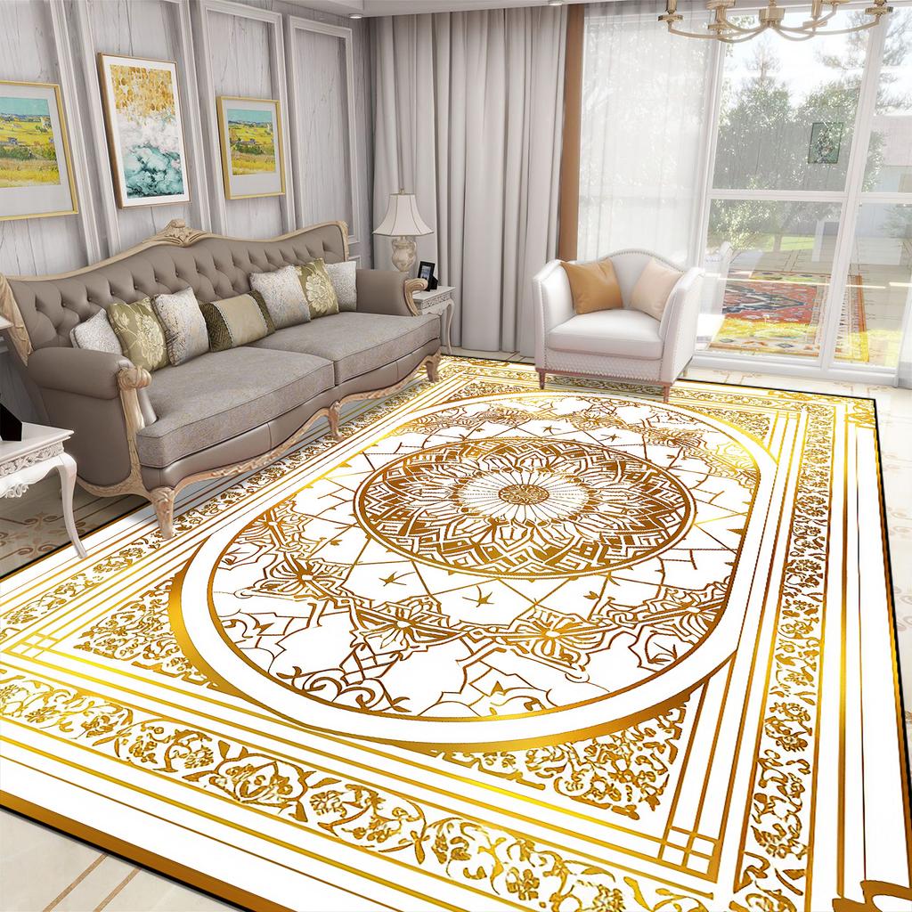 Luxury Large Living Room Carpet European Style Home Room Decoration Gold Coffee Table Mat Soft Washable Rug for Bedroom Alfombra