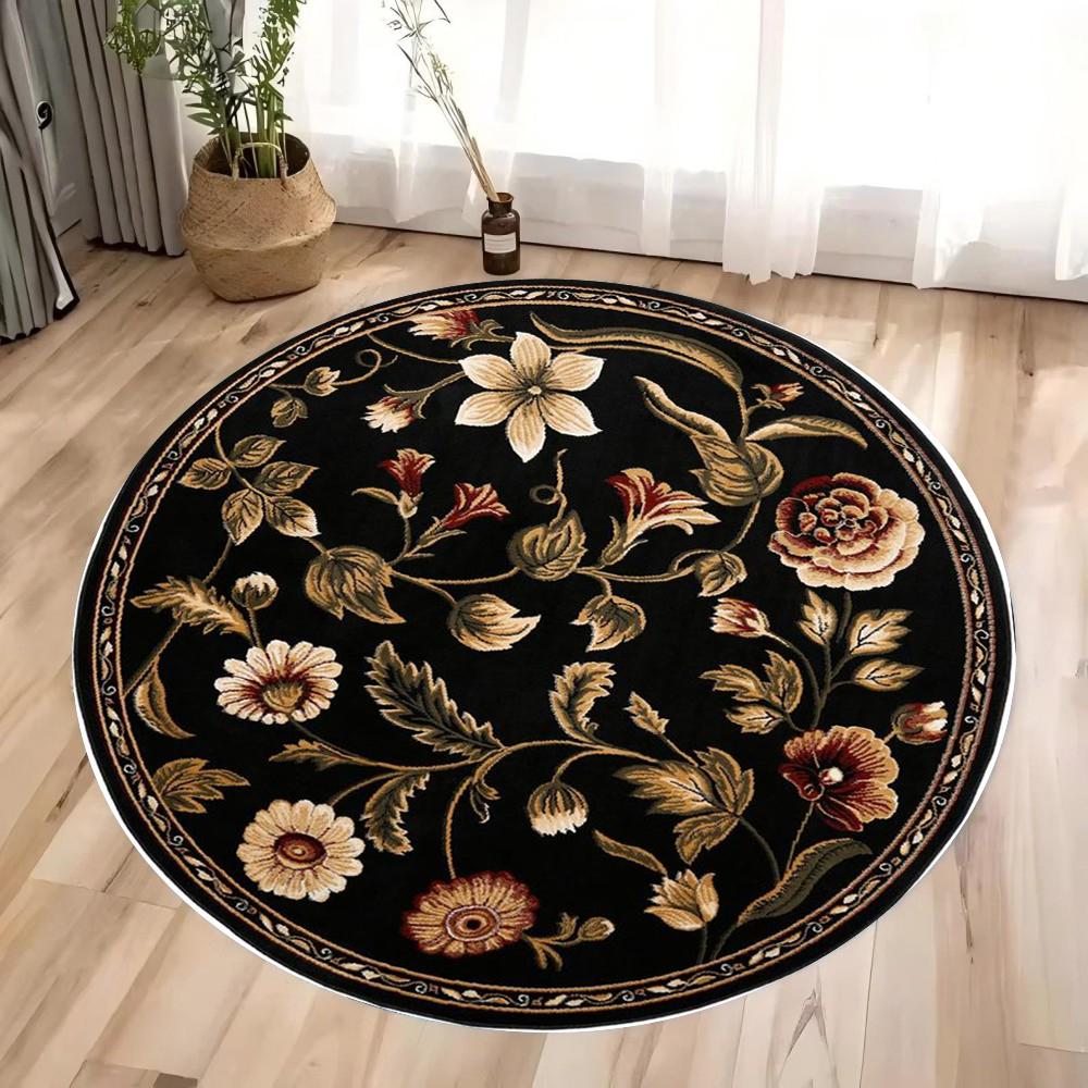 Luxury Flowers Area Rug, Round Washable Non-Slip Large Carpet for Bedroom Room Office Farmhouse, Stylish Home Decor, Outdoor Rug