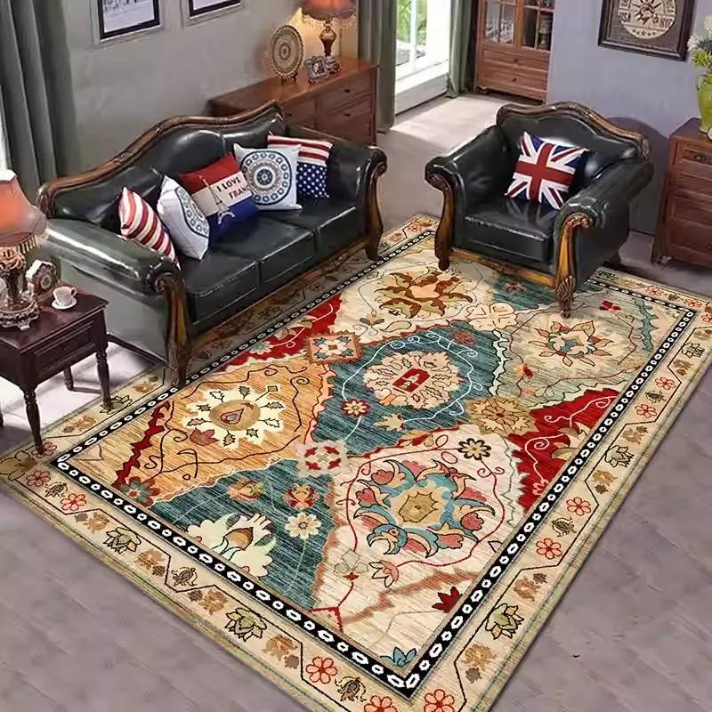 Boho Area Rugs Washable Vintage Modern Neutral Large Flannel Carpet for Dinning Room Living Room Bedroom Farmhouse Non Slip Mat