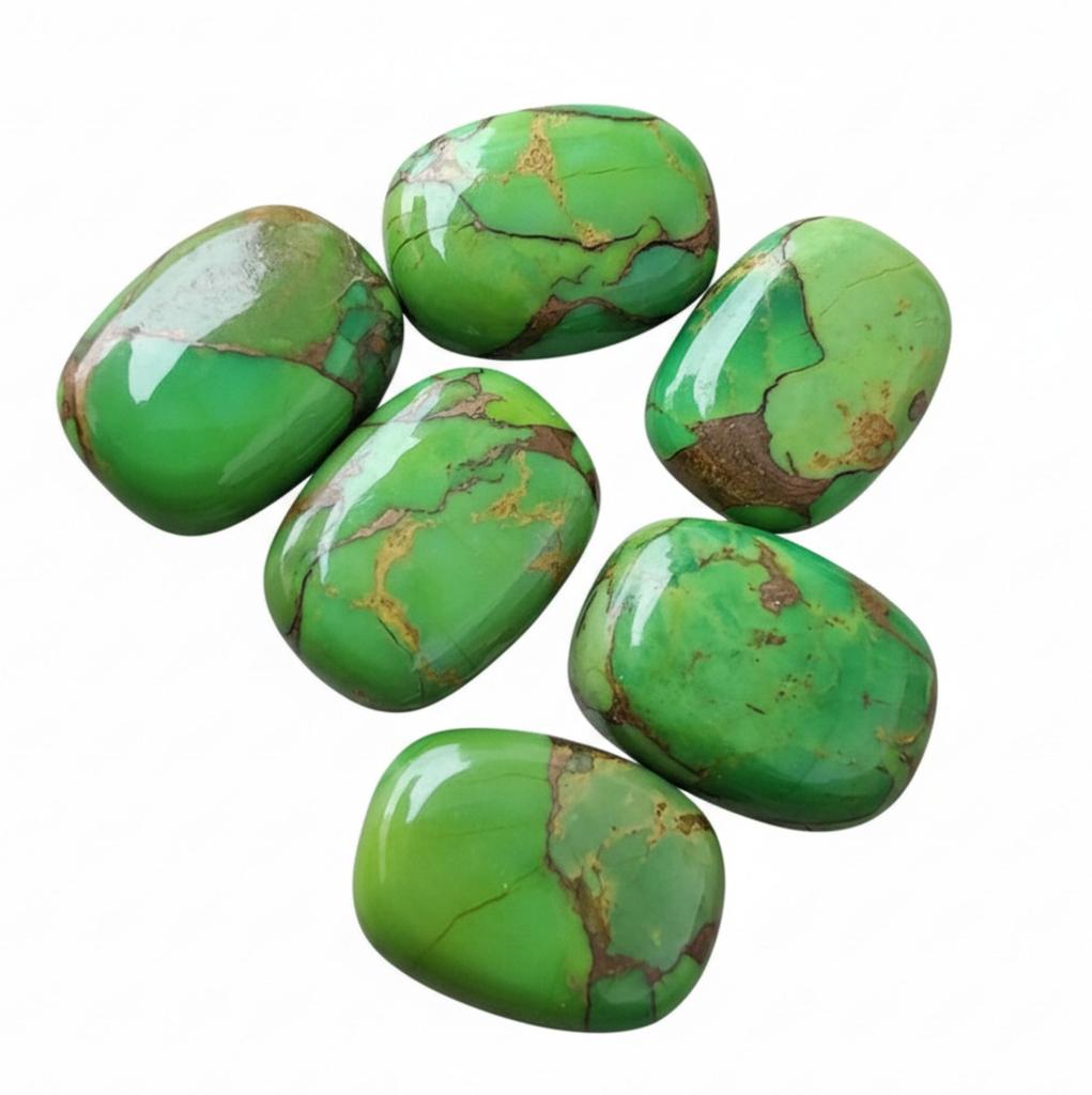 Green Copper Turquoise Cabochon - Polished Natural Oval Gemstone for Jewelry Making