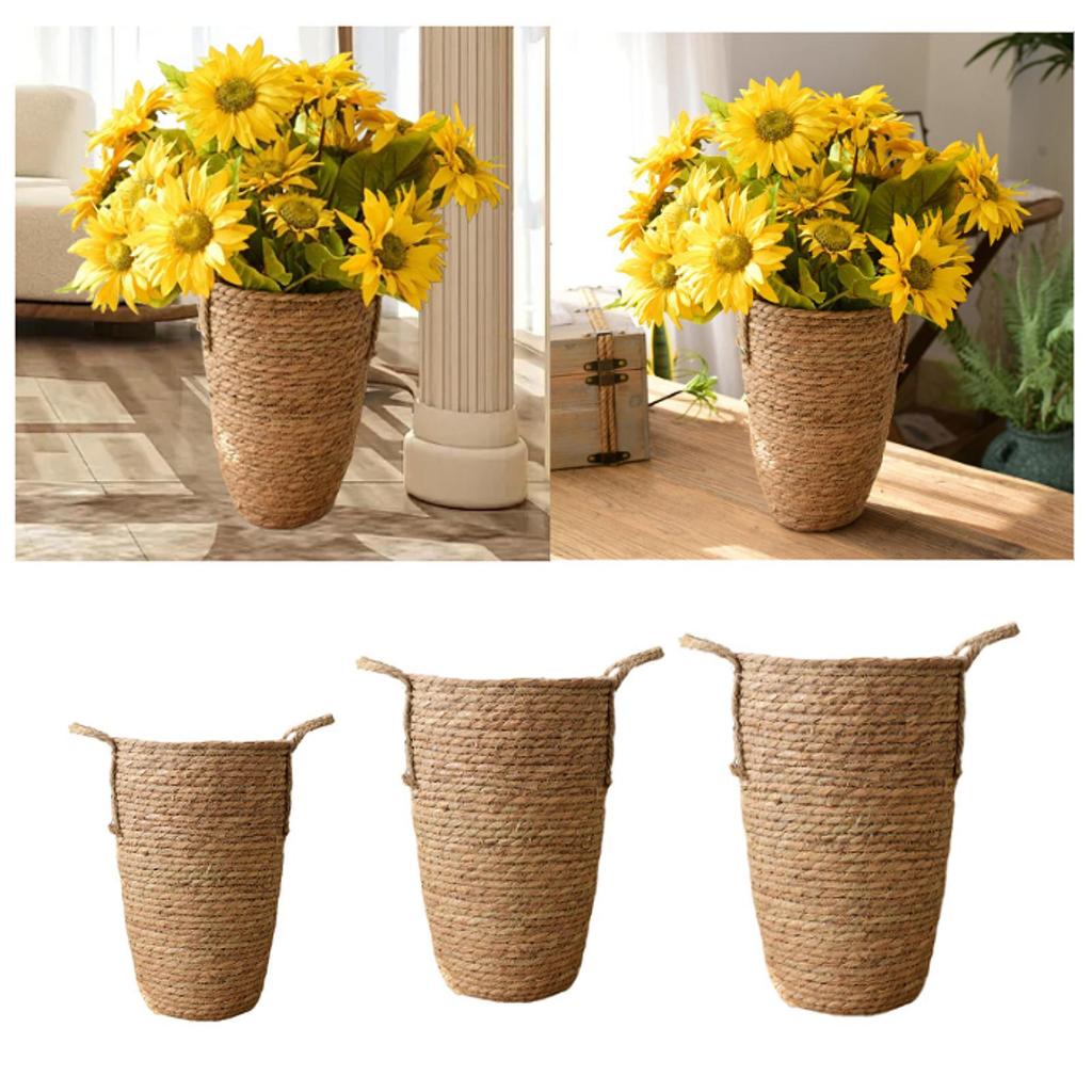 Straw Woven Planter Basket Organizer Decorative Versatile Laundry Basket Plant