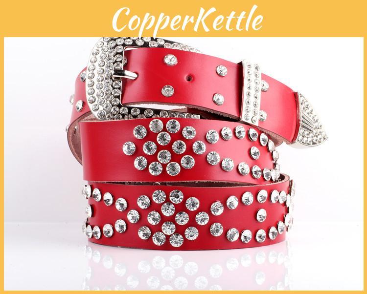 Belt Wide Leather With Metal Pin Closure Rhinestone Decor For Elegant Womens