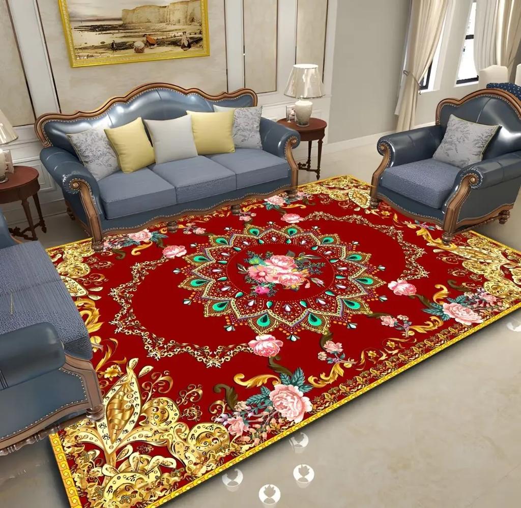 European Style Red Plush Carpet for Living Room Decoration Home Luxury Large Area Rugs Bedroom Non-slip Washable Sofa Floor Mats