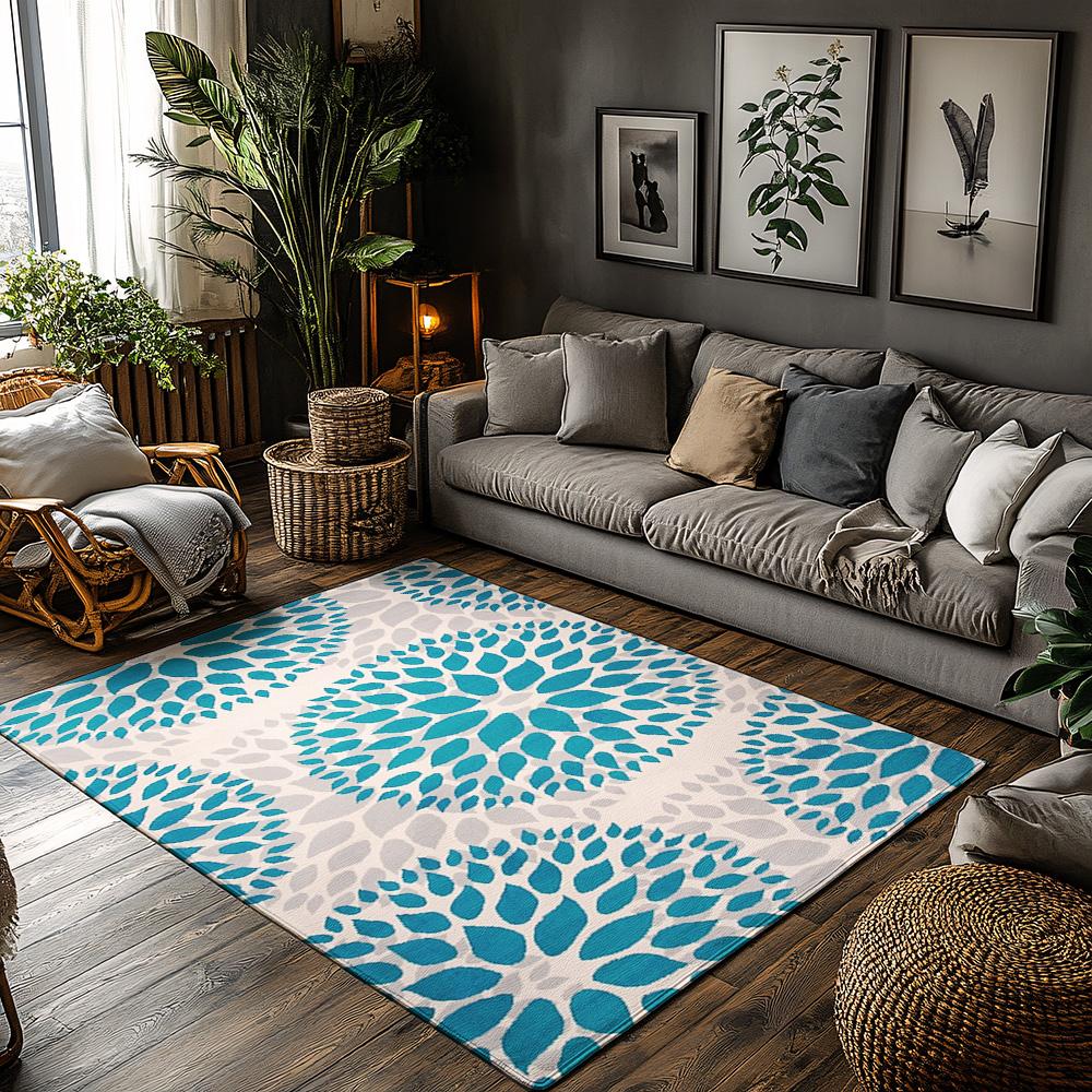 Blue Gray Floral Bohemian Rug, Flower Pattern Non-Slip Carpet, Soft Living Room Mat for Cozy Home Decor